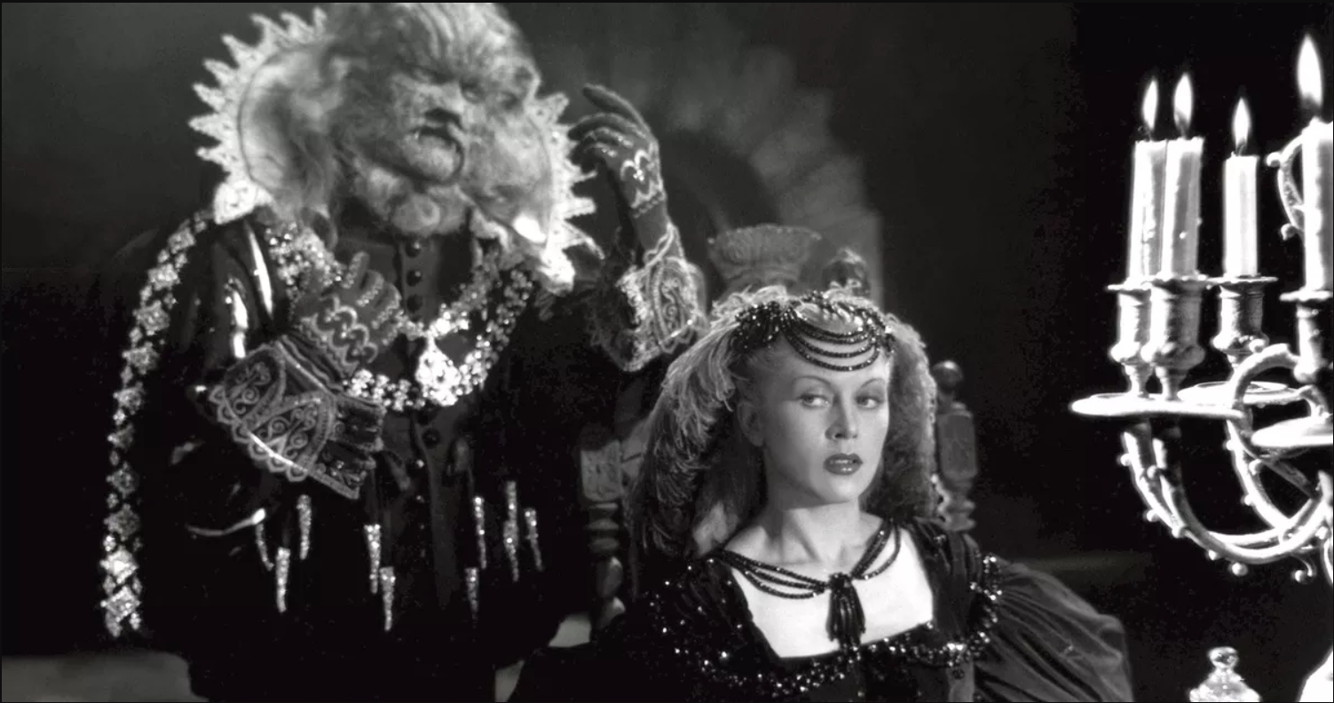 There is a historical allegorical reading of the film; The Beast is trapped in a nightmare world of his curse just as France was in the nightmare of occupation that made the nation beastly and it must awake back into its true self and leave the darkness behind. That only goes so far, though, and I don’t think it should be pushed. Cocteau is not interested in politics and history, he’s interested in the poetics of death, dreams, and the erotic. The real achievement of the film is the atmosphere of its visual effects and acting styles, which maintain a dreamlike heavy atmosphere throughout the scenes in the Beast’s castle (although, in contrast, Belle’s family home is quite quotidian rural France and her venal sisters attempt to elevate it through gowns and the pageantry of lords and servants are satirically skewered throughout the film. In much, Cocteau there are real-world spaces and characters in juxtaposition with its dream spaces and fantastical figures. The characters are always moving back and forth between realistic spaces and his underworlds, often through the sudden eruption of magic in real life via mirrors—which could be read as a commentary on the film medium’s reflections of reality.