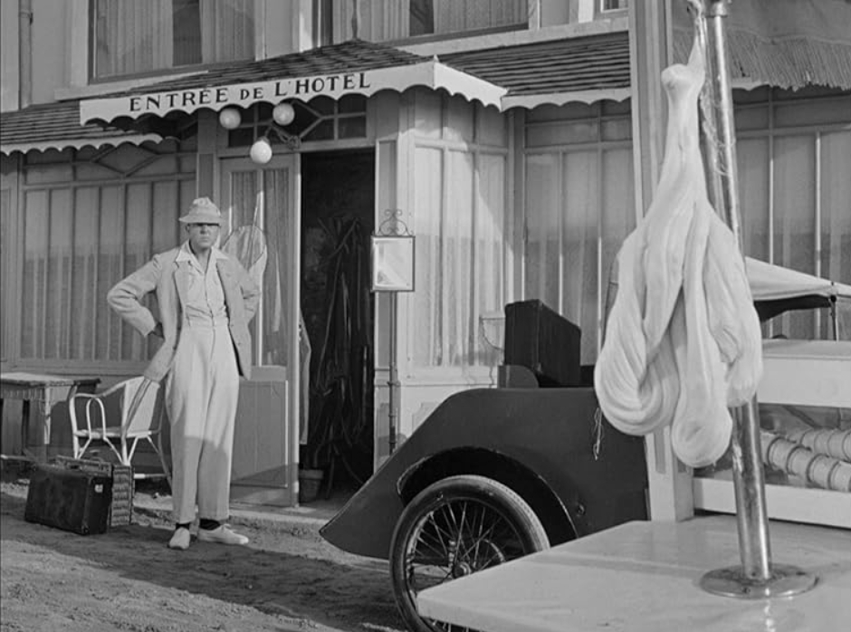 I had intended to write some more about Jacques Tati, but I realized I don’t have any big insights into his films as an influence in general, although I recognize many specific moments and the use of comedy in certain New Wave films as indebted to his 50s films, Monsieur Hulot’s Holliday and Mon, Oncle. These are wonderfully funny movies of visual slapstick comedy featuring his classic character, Hulot. What makes them unique and a development of Tati’s influence from classic silent comedies of Chaplin and Keaton, is his use of deep focus and extremely packed images, where gags may develop at different places in the frame that an audience may not notice at first watch. They are films that reward rewatches, as you discover the sheer depth of comedy in each scene. This certainly partakes of a huge influence from Renoir and Bazin’s promotion of deep-focus cinema, and I’m sure I will reference Tati’s work in the analysis of comedy in certain Godard and Truffaut films (Truffaut’s Dionel film Bed and Board from 1970 is a prolonged Tati tribute, for instance, including a cameo from a false Hulot). But I will leave my discussion of Tati to this paragraph for now.