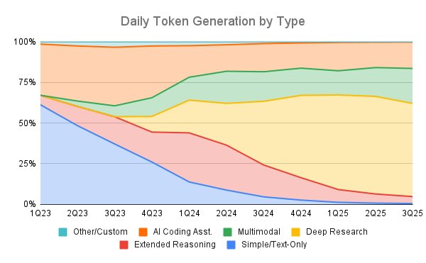 That is basically the same with AI. All the major use cases for AI that promise real efficiency gains and thus would pay off the speculative investments are business to business or business to government: Coding, biomedical research, power grid efficiency projects, just for instance. This chart shows it very clearly. While initially the novelty of ChatGPT in 2023 resulted in a large percentage of AI being used for text generation (what you and I and students are doing with chatbots), that has quickly been overwhelmed by every other use to the point that its completely negligible.
