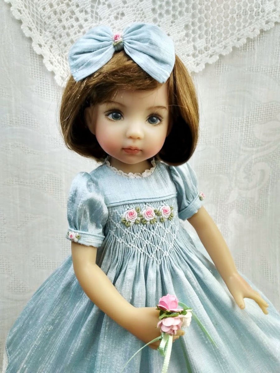 My Little Darling doll is modeling a new lovely Dupioni silk dress now have available on eBay. You can find it here.