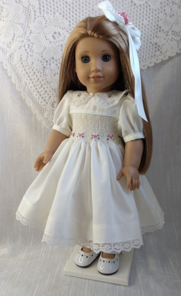 I have two new smocked dresses for your collector dolls on Etsy. You can find it here.