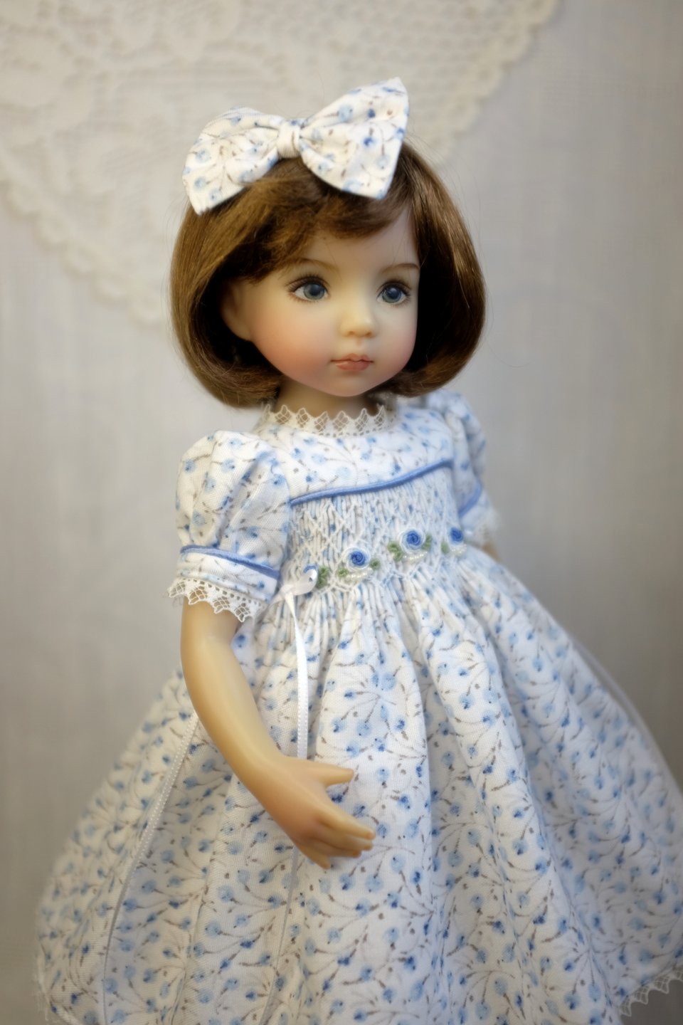 I have a new listing available for a smocked dress featuring a vintage English cotton lace for the Little Darling doll on Etsy. You can find it here.
