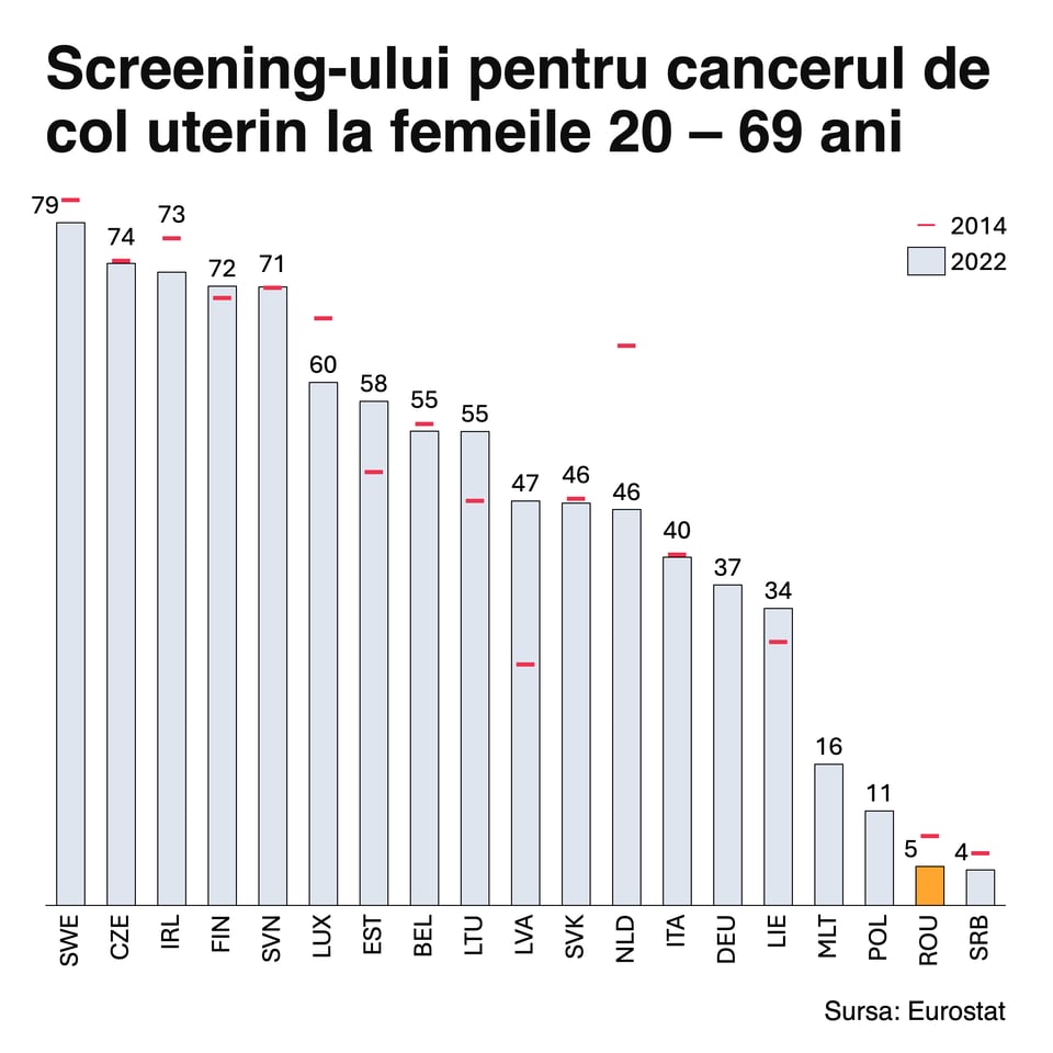 În ultimele săptămâni am tot vorbit despre screening și prevenție. Știm că România cheltuie infim de puțin cu programele de prevenție și informare (mai puțin de 0,1% din bugetul total al Sănătății din 2022). Singurul program “de succes” de screening al cancerului în România este cel de col uterin provocat de HPV.