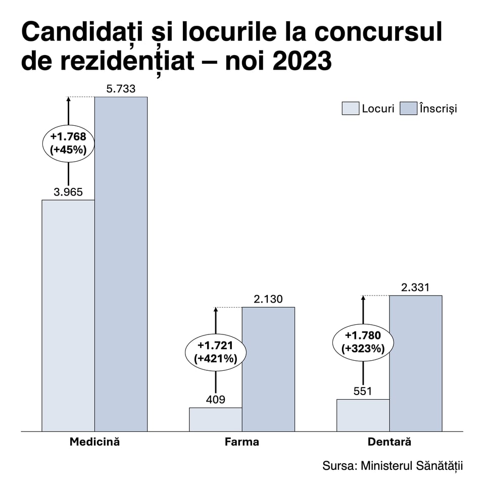 Dintr-un total de 3.965 locuri scoase pentru rezidențiat, 643 au fost pentru medicina de familie (cele mai multe). Următoare specializare după numărul de locuri a fost Anestezie și Terapie Intensivă (ATI) cu 178 de locuri.