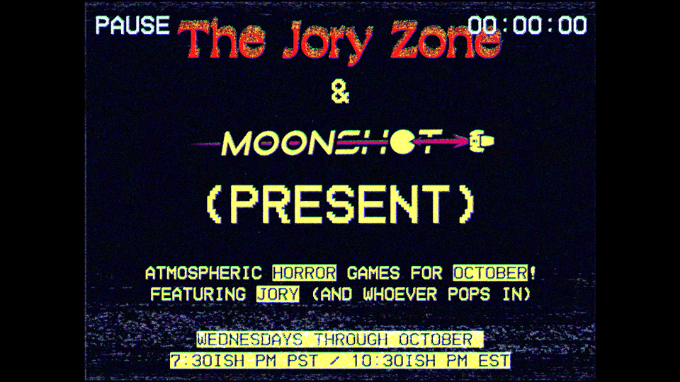 Jory is playing atmospheric horror games every Wednesday in October on twitch.tv/moonshotnetwork. No jump scares, guaranteed.