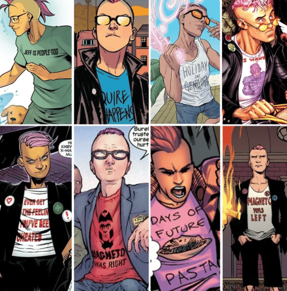 Quentin was a student at the first Charles Xavier School who started a riot after daring to question his teachers’ methods for achieving human / mutant coexistence. Specifically, he asked “Why coexist?” and “was Magneto right?” Over the years, Kid Omega went from rebel to threat to reluctant student and eventually, to hero. As we said above, character growth is motivated by conflict. And, sure: Quentin’s irritating, so plenty of conflict there. But I truly believe his character arc is one of the more fascinating of the younger, next generation of X-Men. He started as a nobody, and then Grant Morrison turned him into a rebel and then a monster, a threat to Charles Xavier’s dream, attacking it from a punk-rock-anarchist-millennial’s point of view before Twitter and Tumblr really became things. Was he a villain? Technically. But no one really labeled him as such — he was just… a problem? A mouthy kid who needed a time-out. Eventually, he bounced between varying levels of nuisance, and then kind of became… comic relief? It’s his formative years, Quentin’s journey from handful to hero, that I wanted to explore. The moments in which he had to learn the value in trusting in those who were very much not Quentin Quire.