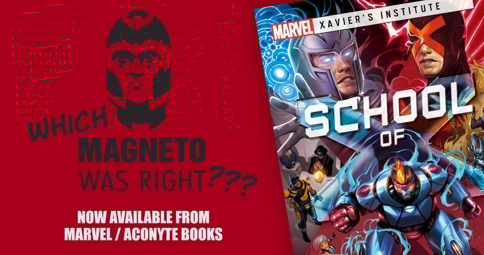 A bit about the book! So, back in 2021 I was invited to submit pitches to School of X, an anthology that Aconyte was putting together based on their out-of-continuity series exploring the X-Men comics circa 2015, as crafted and steered by friend of the newsletter, Brian Michael Bendis. These comics took place after Avengers vs X-Men and the death of Charles Xavier (at the time; it’s okay, he came back), and Aconyte had already put out some successful original novels based on characters available around the time. The anthology was designed to offer a spotlight to some of the younger students filling one of the two mutant schools around in the comics at the time: the new Charles Xavier Institute, co-headmastered by X-Men stalwart Scott Summers, aka Cyclops, and former X-enemy, Magneto. One of my pitches, centered on a divisive character named Quentin Quire (ala “Kid Omega”), was accepted info the novel, and my plan—influenced by recent viewings of Tom Hiddleston as the MCU’s Loki in his Disney+ series—was to write a first-person account of a time-travel joyride from the POV of Quentin, firmly established as a selfish, self-absorbed problem child with millennial leanings, as he learned what it meant to be selfless after observing the emotional growth of his role model, Magneto, former evil mutant and popular icon for mutant revolution and superiority within the comics and continuity.