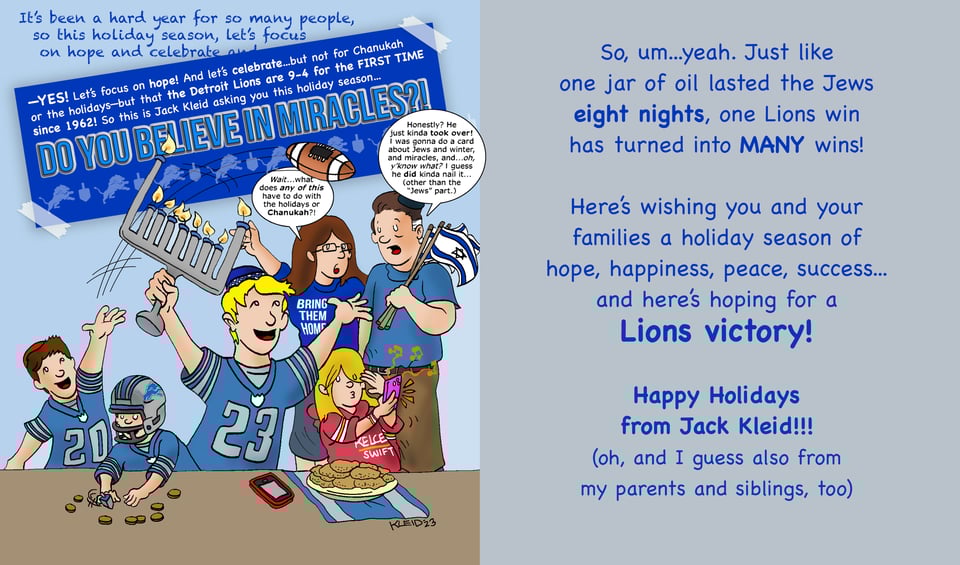 We lost a dear and beloved family member in 2023, and I traveled a fair bit—went back to Detroit three times this year to my usual one, was down in Florida and for two glorious weeks this past August, we were lucky enough to celebrate our son’s bar mitzvah together throughout Israel. I watched my oldest boy graduate middle school and start high school, spoke on two or three panels at various conventions (including one completely focused on Jewish comics and Jewish comic book creators), took my boys to the Basketball Hall of Fame, watched a bunch of great movies and TV, read a shitload of fantastic books, and met a bunch of cool people. I spent time with my family, but definitely not enough. I didn’t get enough sleep, and have to change that in 2024. Uh, the Detroit Lions are…good?