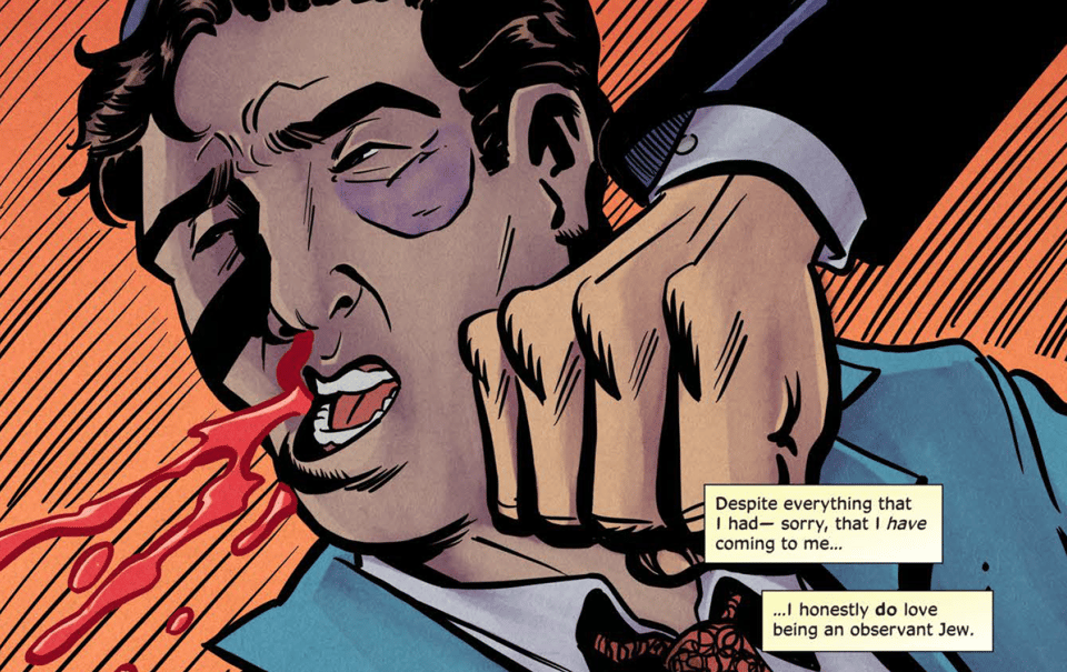 As I said at the end of issue #1, I am proud to be Jewish. I’m a firm believer in the need for more original Jewish fiction, whether in comics, prose, television, or film. Not all Jewish fiction is going to be pretty. Some of it, in fact, needs to be honest, ugly, messy, and divisive. It has to spark a reaction and conversation, opening the doors to debate, compromise, or change. My fellow co-authors and I hope, if nothing else, that’s what readers took away when reading Nice Jewish Boys. And we hope you do the same with any comic you may happen to read—Jewish or otherwise—even if, like others I’ve mentioned above, you might have come away from this one troubled and hating my guts.