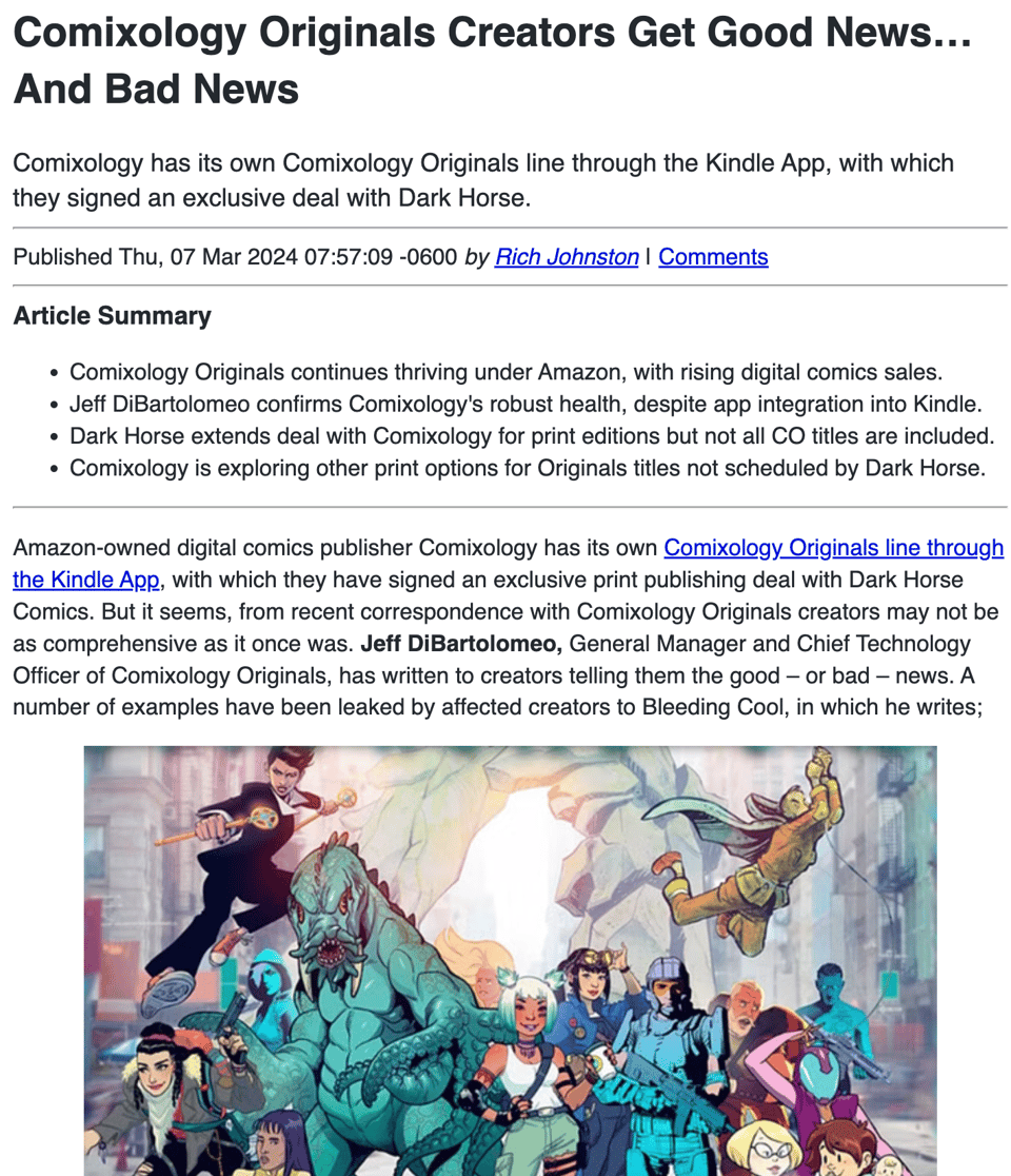 What I can say is this: Comixology is committed to getting our series into print somehow and some way. Several options are currently being explored, and when we have a clearer sense of the who, when and how of it all, you can be sure I’ll let interested folks know by screaming it from the virtual rooftops.