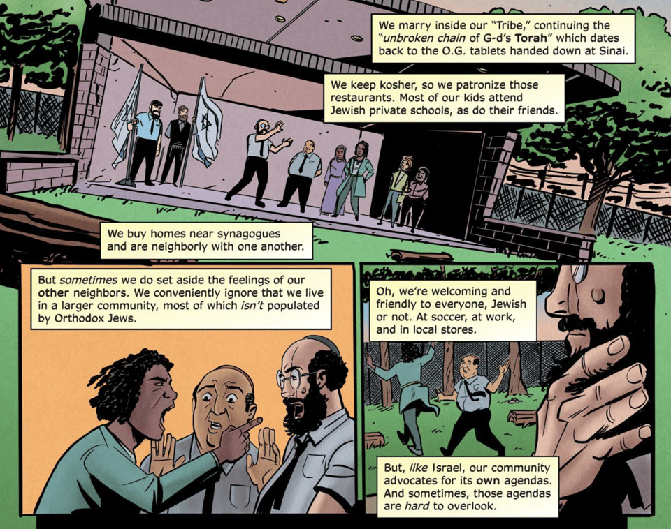Did I make Jews look bad in this comic? I’ll likely get shit for saying that religious Orthodox Jews are insular and don’t connect with our non-Jewish neighbors, co-workers, or local community. Look, that’s a broad generalization, and I know plenty of religious Jews who serve on city or community councils, have deep and meaningful relationships and friendships with non-Jewish co-workers, colleagues, and neighbors, and are active in local or regional sports leagues, book clubs, gyms, and all different types of extracurricular activities.