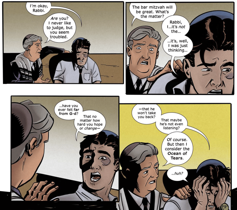 Over the decades I’ve been writing comic books and graphic novels, I’ve often grappled with themes going on in my life and have attempted to wrestle those themes to the page, inserting them into the stories I’ve told. Most of my stories are about legacy in some way—children and parents, mentors and students, mantles of both religion and justice in whatever form they take. Many of my comics are about family, either that of blood or one formed by common bonds, classes or interests. And sure, I get preachy throughout most of them…but I’m usually pretty confident about the things I have to say. This one, though….this one was tricky. Mainly because I think when it comes to aspects of my community, my religion and my faith…well, those are things for which I’ve often had the most doubts about over the years.