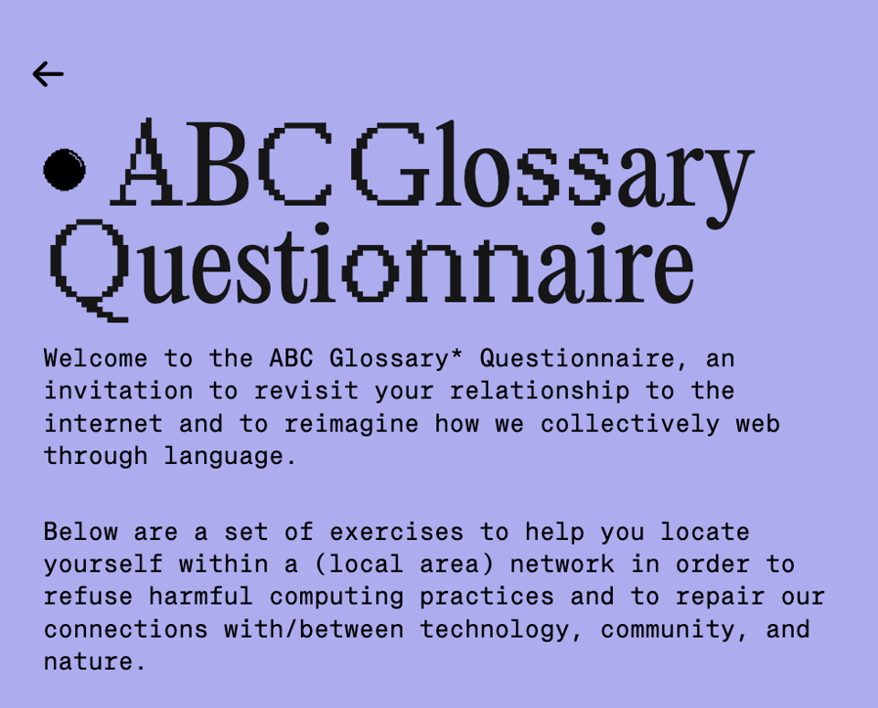 one of the exercises available in the anti-colonial Black feminist critical media ecology (abc) questionnaire invites you to place yourself within your LANs — to begin to map the links between each other. capitalism and white supremacy demand that we don’t see ourselves as part of a network, but rather as individual routers and devices on privatized networks (monopolized by internet service providers, also known as ISPs). as a response to this monopolization, technologies of care have birthed mesh networks that keep us tethered to community.3