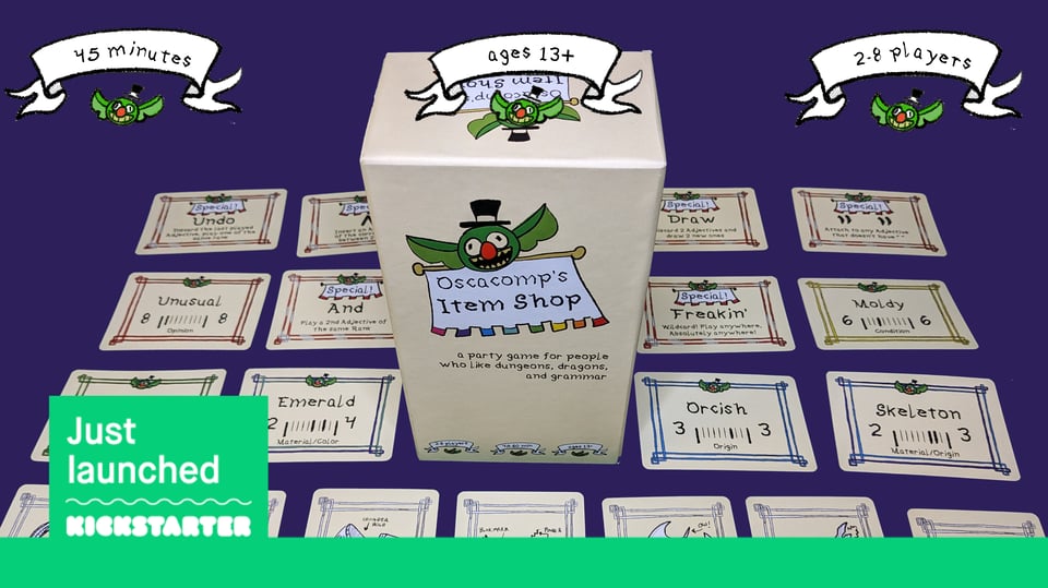 Back in March 2023, I made a card game for the Eggplant Show game jam. I mean, the theme was "designing around language," so how could I not? But then I accidentally made something worth developing all the way through 🤦and so now, here we are, a bit over a year later, Kickstarting a production run!