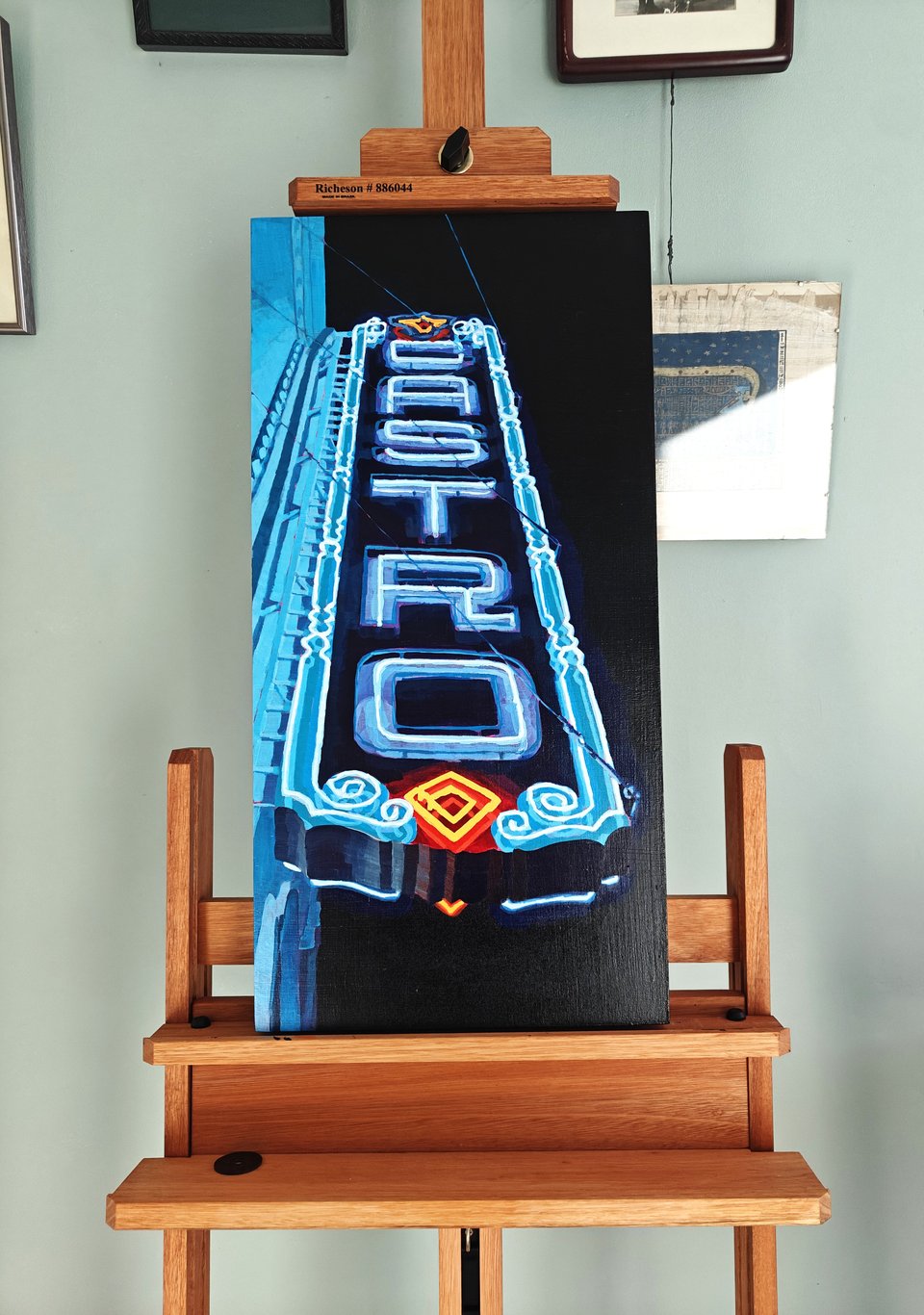 It’s not just painting, though, I’m also doing research and digging into the subject matter in parallel. I read San Francisco Neon: Survivors and Lost Icons by Al Barna and Randall Ann Homan, and I took their downtown walking tour! It was exciting to learn about the history of neon in the city, as well as a little about how neon signs are made and what gives them their colors. Make sure to check out their website and sign up for upcoming tours.