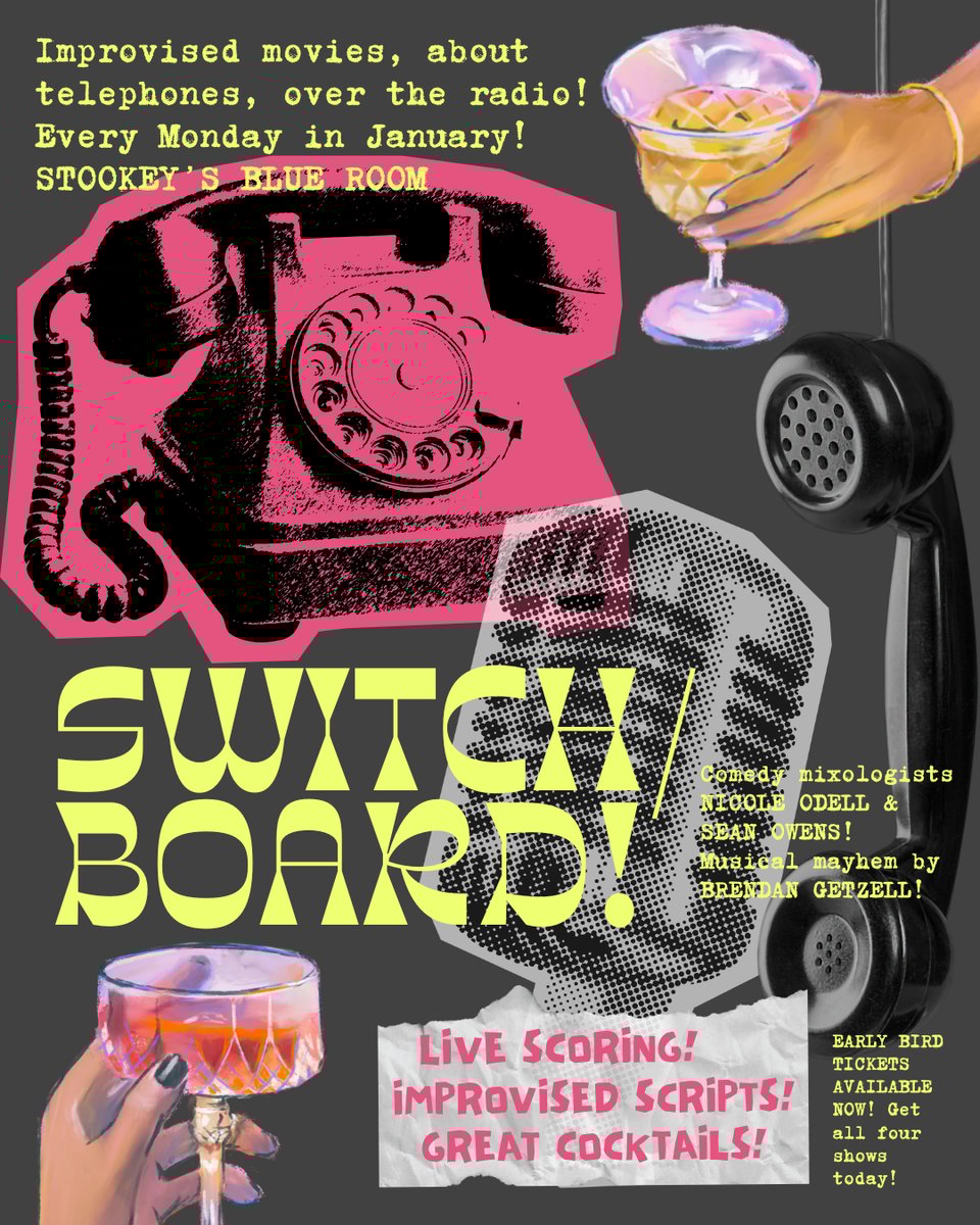If you’ve been reading my newsletter a while, you have probably noticed that I always plug CROONERS. I am the doorman for the show, and it’s my favorite night of the month. Now there’s a separate newsletter you can follow for all things Fancypants! Fancypants produces a few shows, including CROONERS and a quarterly show that has been at Oasis and will take place at The STUD starting in February. On Mondays in January, we will also have SWITCH/BOARD, an improvised radio play, also at Stookey’s Blue Room.