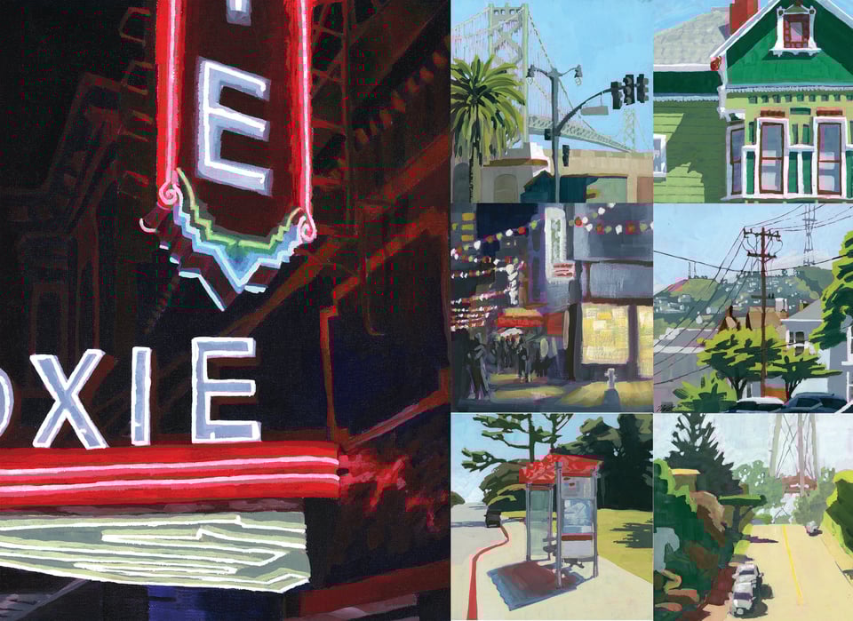 My recent obsession with neon signage, the upcoming opening of the renovated Castro Theater, and my relationship with Queer Arts Featured have come together to create my first solo show! Tentatively titled BEACONS, the opening will be February 6th during the Castro Art Walk. Follow along here as I create this series celebrating the lights in the dark that lead us to warmth, company, and culture in the city. This will be my main focus over the next couple of months as I paint this series from almost nothing to filling the gallery space!