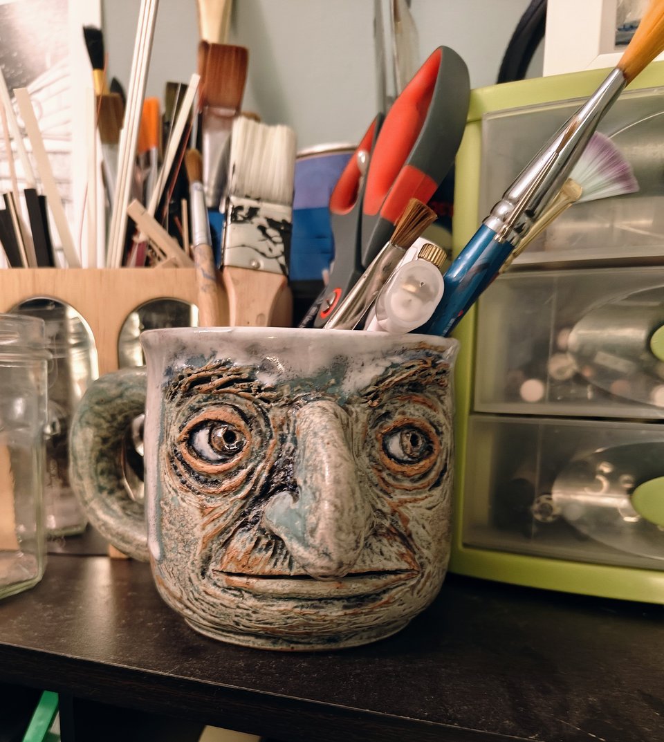 Dave also gifted me a fantastic mug, who will stare at me forever from my work table filled with various tools and brushes.