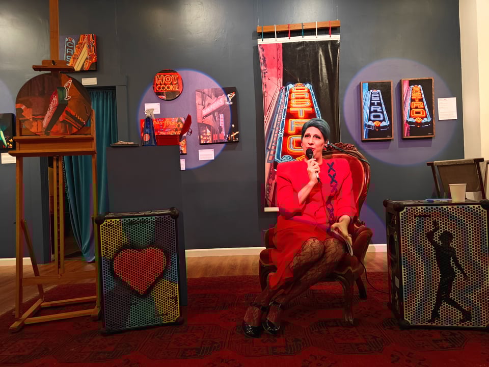 For this month’s Castro Art Walk, I worked on a new Twin Peaks painting live in the gallery, and then EnSeanté read their brand new book of poems, What’s Your Sign?, inspired by BEACONS. Copies are available at QAF! They got to the heart of why this series is important to me, and why it has connected personally with so many people. There’s also deep neon lore, plenty of good humor, and a tribute to QAF itself.