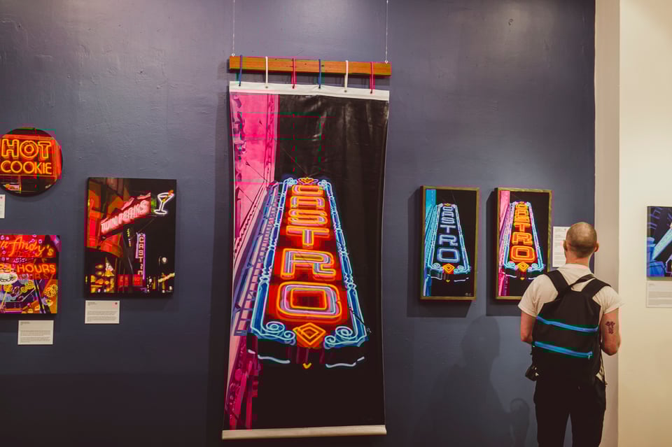 Connecting with people at the opening about queer history, neon sign history, and community was amazing. It’s so satisfying to see all my hard work up in the gallery and to see people enjoying it.