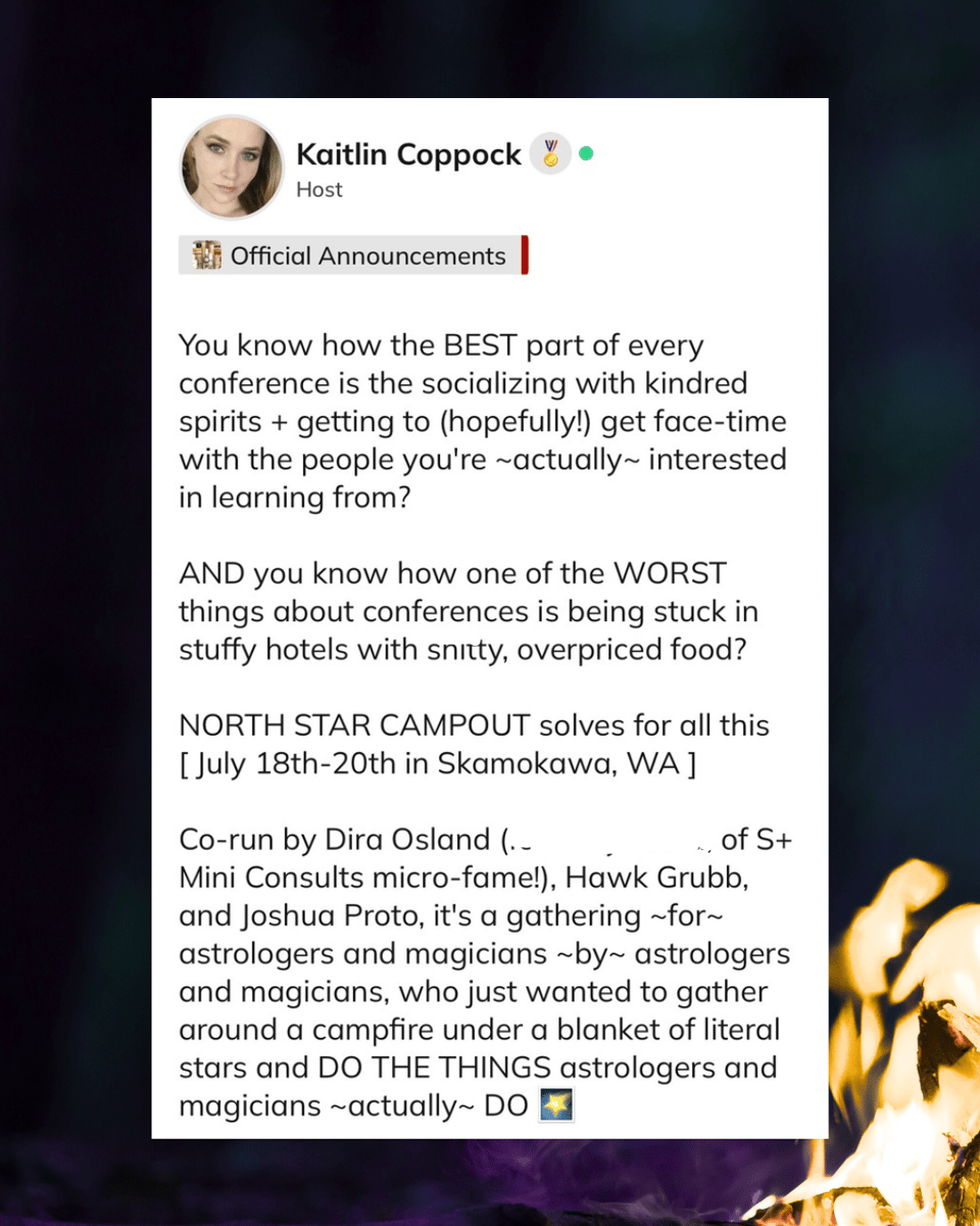 Our resident talisman maker Josh Proto is offering a thing we’re calling the MAGICAL MATCHMAKING session, to every North Starian who gets a ticket through Thursday (June 26). Tell Josh your heart’s desires, show him your chart, and with his extensive knowledge of astrological magic, he will triangulate. Get actionable nuggets like “for you, use amethyst for your talisman for Jupiter, use aquamarine,” “Venus has so much to offer you - you should be working with her!” “you want a promotion? I know you’d think jupiter as your lord of the 10th, but in fact, you should be moving toward mars, and boxing with your coworkers.”