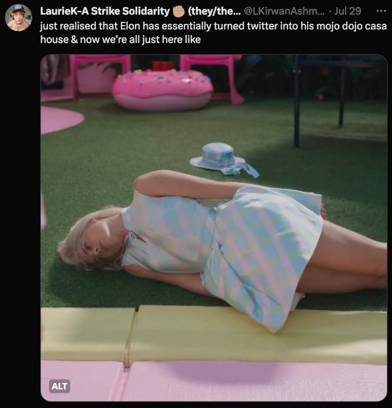 “At the end of the day, I just want my fellow eager viewers to remember that when a toy company signs off on a toy movie, it can only be because they knew it would help them sell toys. Have fun, wear pink (I’m planning to). Just keep in mind that Barbie has already made $150 million opening weekend. That doesn’t mean it can’t strike a nerve, but it will never have the nerve to call for a strike.” Barbie's Capitalist Critique Will Make BlackRock Millions - Lindsay Lee Wallace • bloodknife