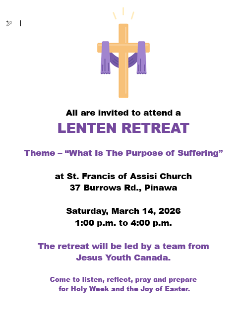 Good Evening; Keep March 14th open for The Lenten Retreat