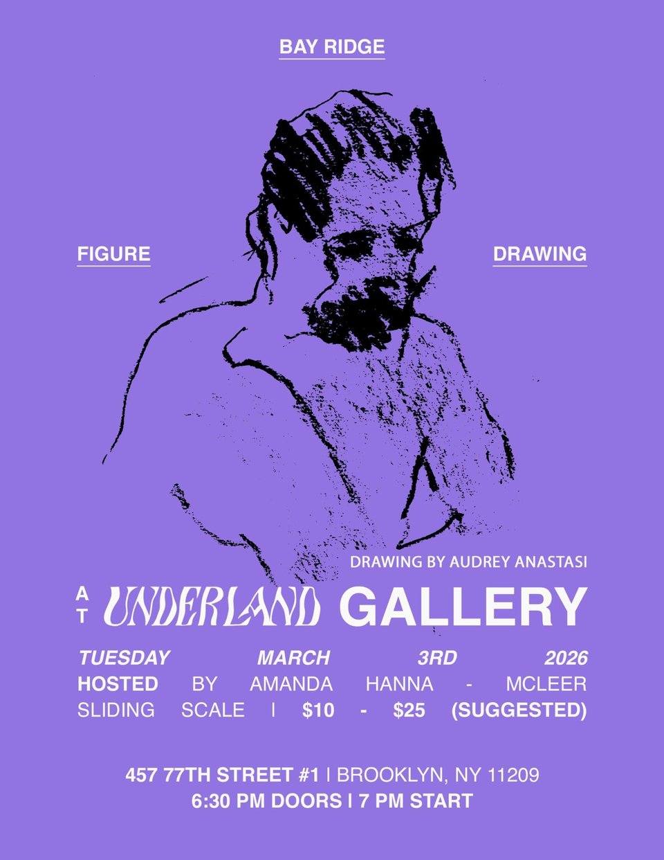 Tue., Mar. 3 | Bay Ridge Figure Drawing @ 7 p.m., Underland Gallery, Bay Ridge