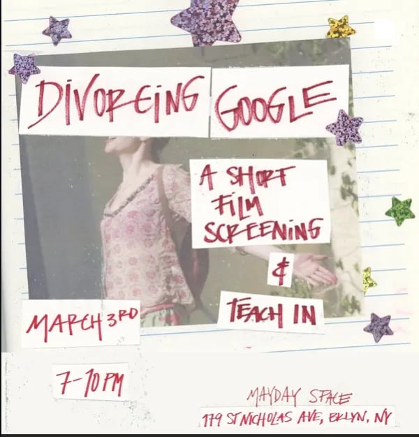Tue., Mar. 3 | Divorcing Google Screening & Teach In @ 7 p.m., Mayday Space