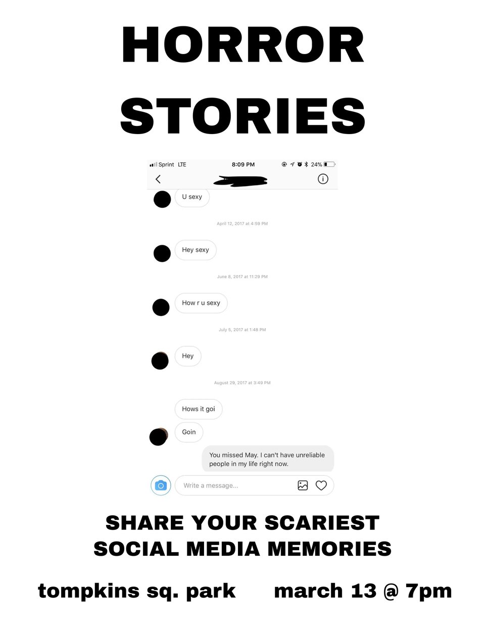 Fri., Mar. 13 | Social Media Horror Stories @ 7 p.m., Tompkins Sq. Park