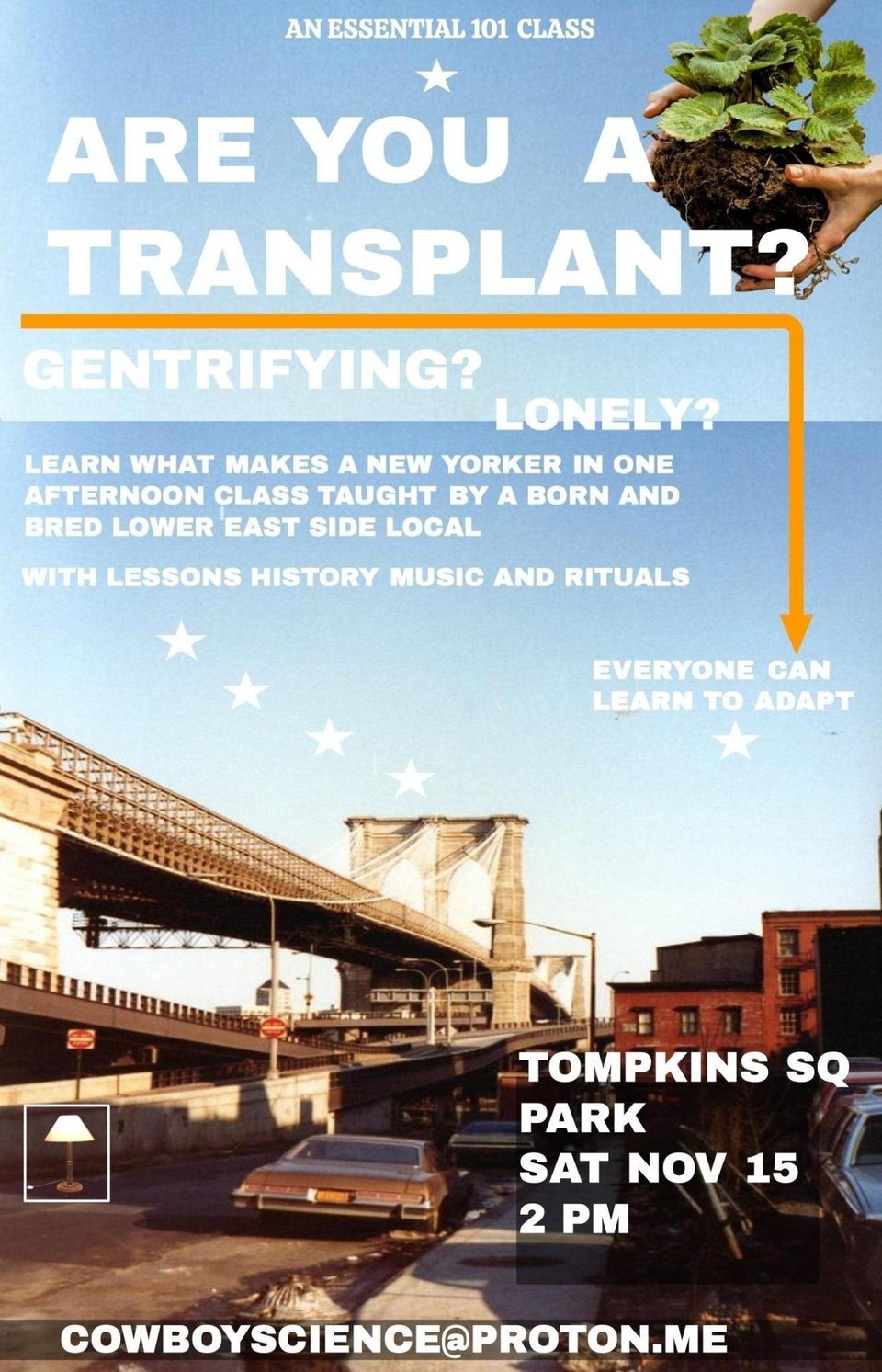 Sat., Nov. 15 | BE A NEW YORKER 101 @ 2 p.m., Tompkins Sq. Park