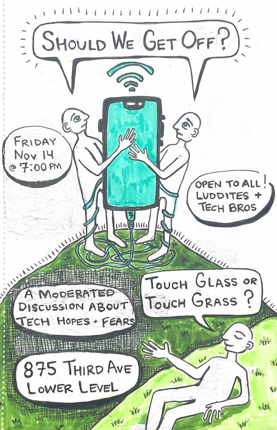 Join us TONIGHT for a moderated discussion about tech hopes and fears, featuring some fierce tech critics and writers: Adam Aleksic, Caitlin Begg, August Lamm, and Nick Plante.