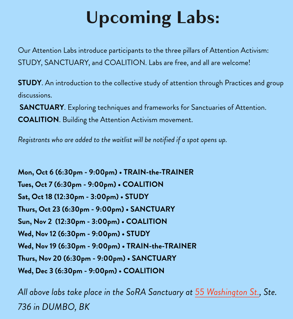 Sign up for any session at www.schoolofattention.org/programs/attention-labs.