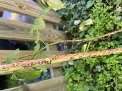 Siv i Sollentuna har fläckar på skotten i hallonbuskaget. Vad är det som händer?