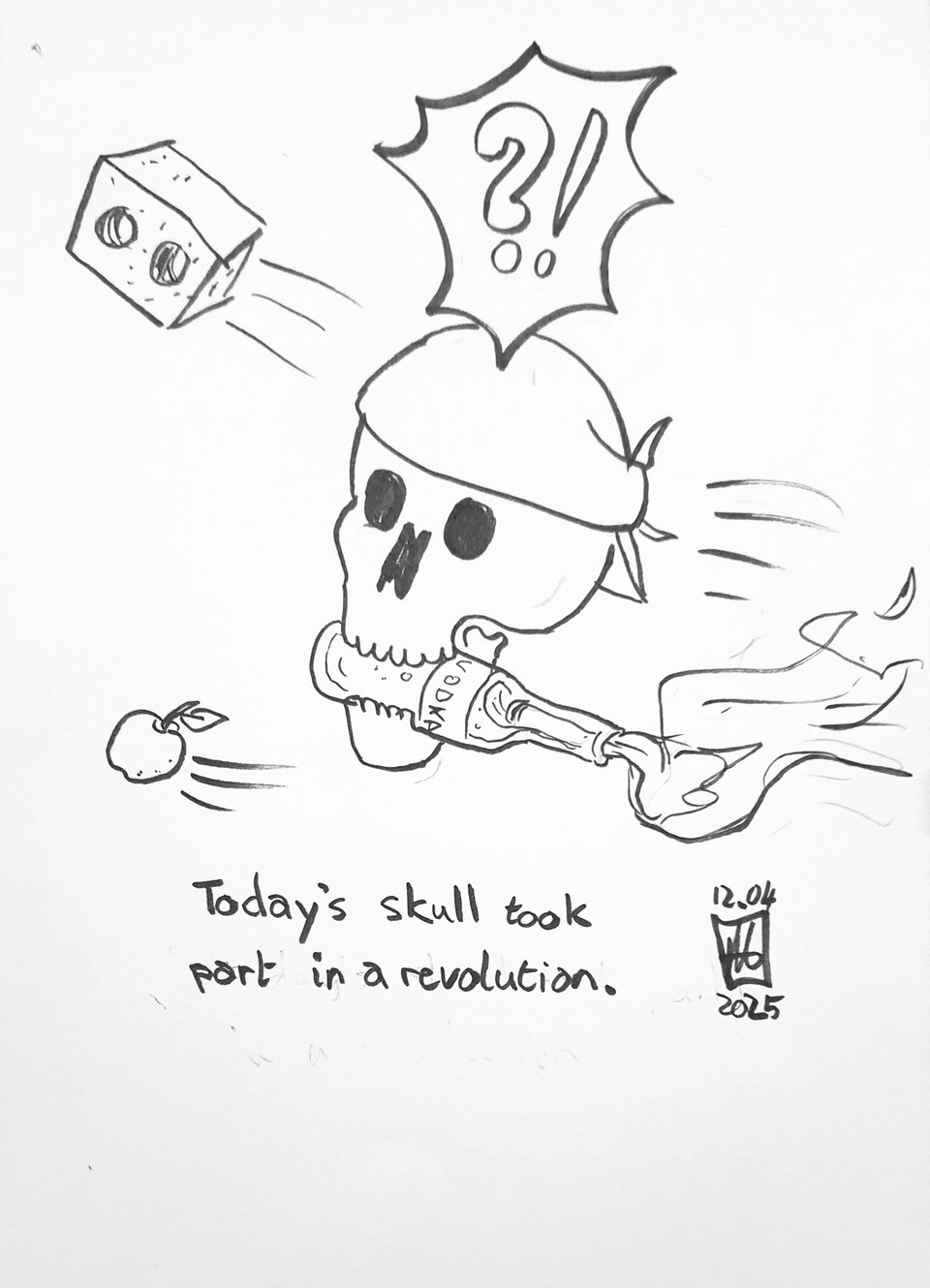 I really enjoy drawing skulls. They are my little homage to ‘The far side’ and ‘book of biff’ comics. I’m a great admire of both. I think there is tremendous skill and vision in breaking doing what can a complex idea into a single panel image. ‘The far side’ would have to be one of the best at it.