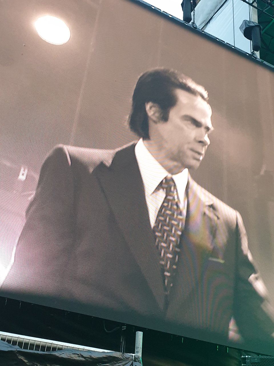 I was right on the barrier. But not as close as I would like. Still even though Nick cave continues to embody the ‘Godfather of Australian goth rock' he's something almost beyond that now. There is an immense almost manic joy radiating from him as he performs. Back by the mad Warren ellies, the menacing bad seeds and some glorious gospel singers there was something almost hill song about the whole thing. Cave throwing himself around stage and occasionally into the pit with more exuberance than a 67 year old should poses.