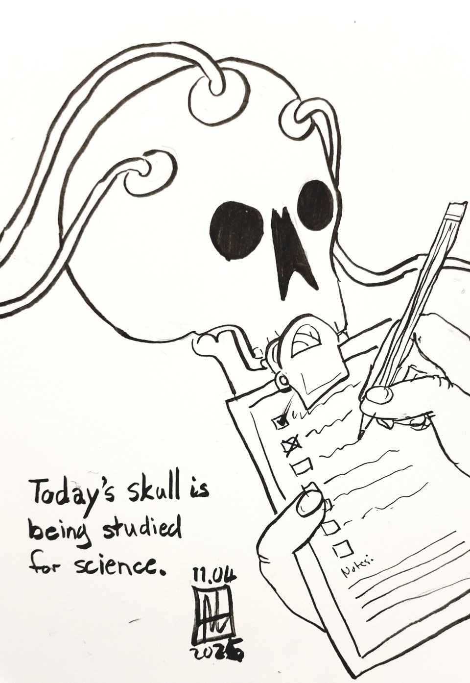 Speaking of skulls. I’ve spent what time I have trying to build a buffer of comics so I can start working on something for the 50 × 50 art prize at the Brunswick Street Gallery.