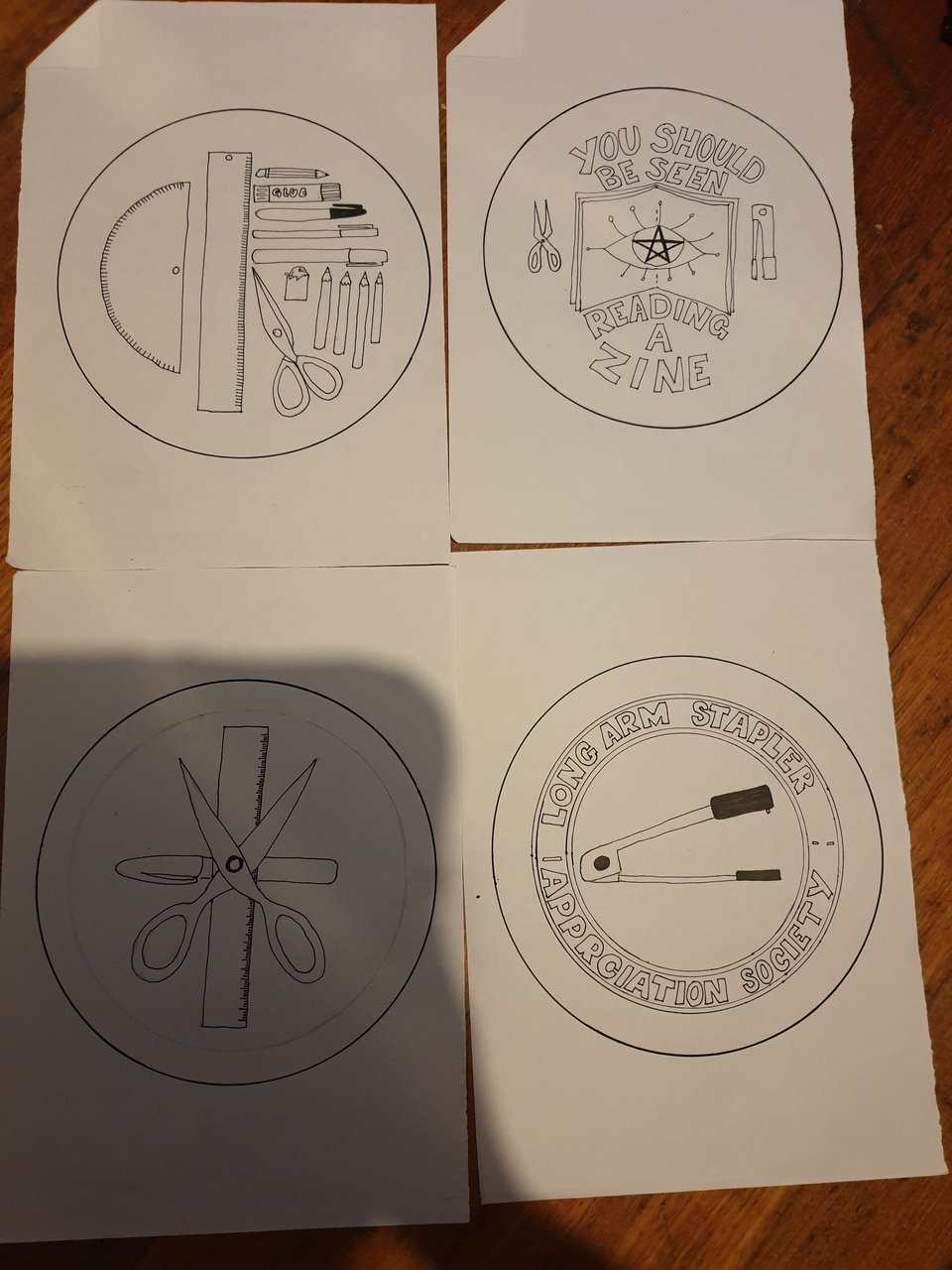 Lines are done on the zine propaganda badges! I’m trying to decide if they need some colour of not.