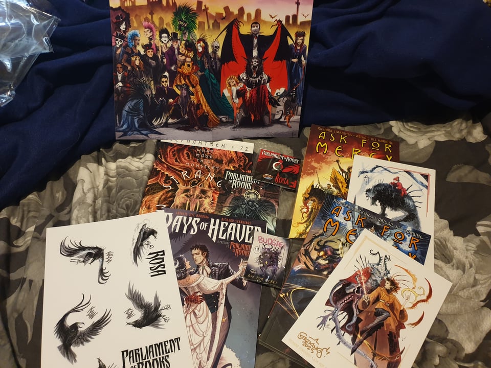 also I’m reading Parliament of Rooks, which I’m enjoying and again great art work. i got both from All Star Comics on queen street in Melbourne. and I got the items from the kick starter I backed!