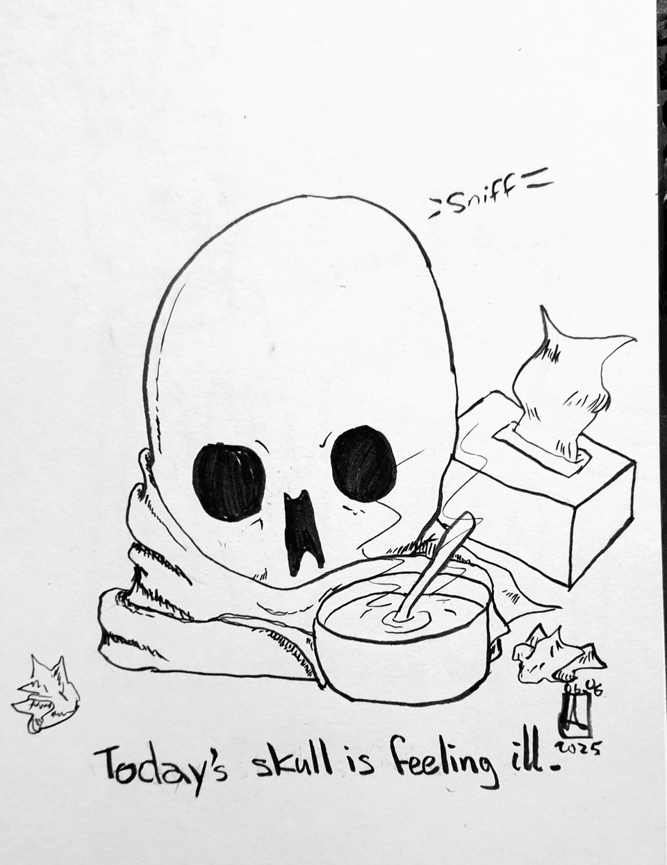 I have the rest of the week off so I want to scan a zines worth of skulls ready for hallozeen in October.