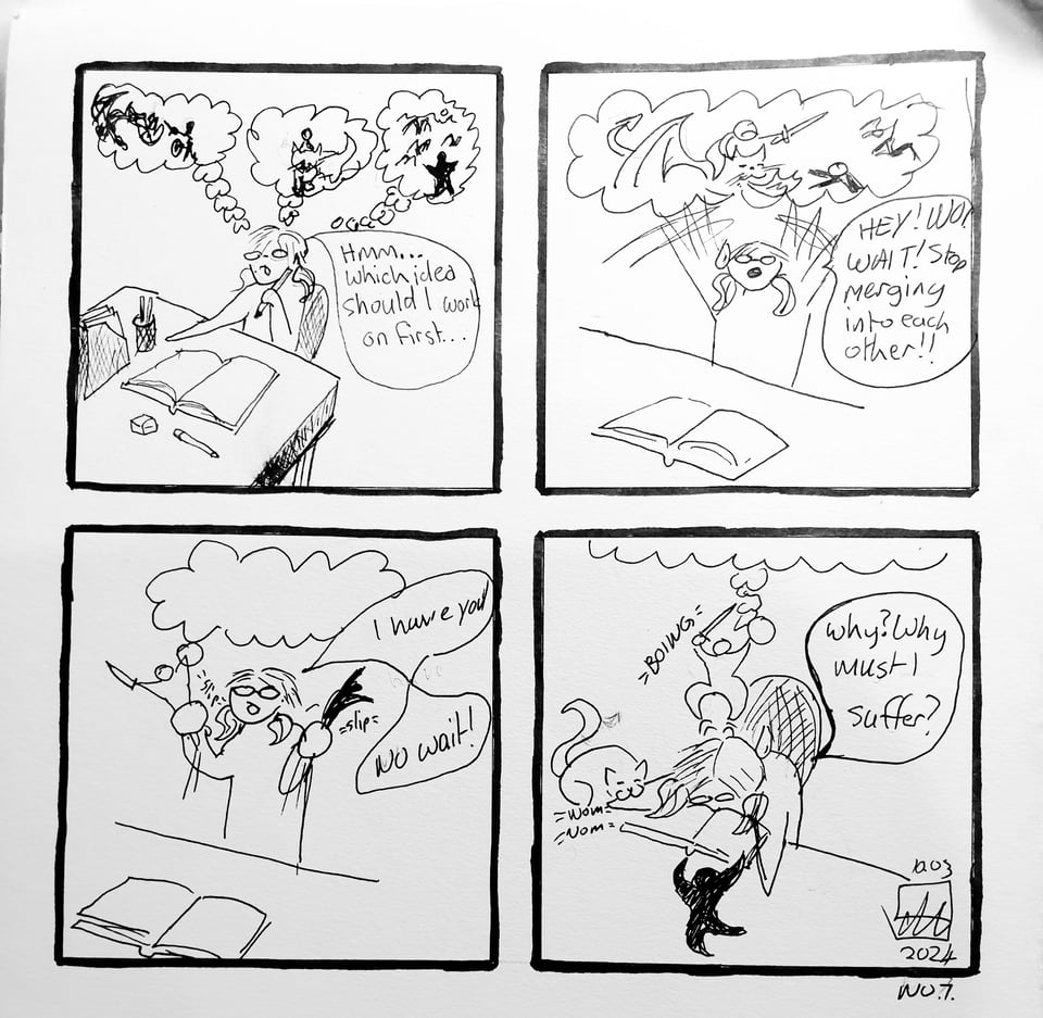 Sometimes there are too many little ideas. Sometimes they try to merge into one while you're trying to jot them down...