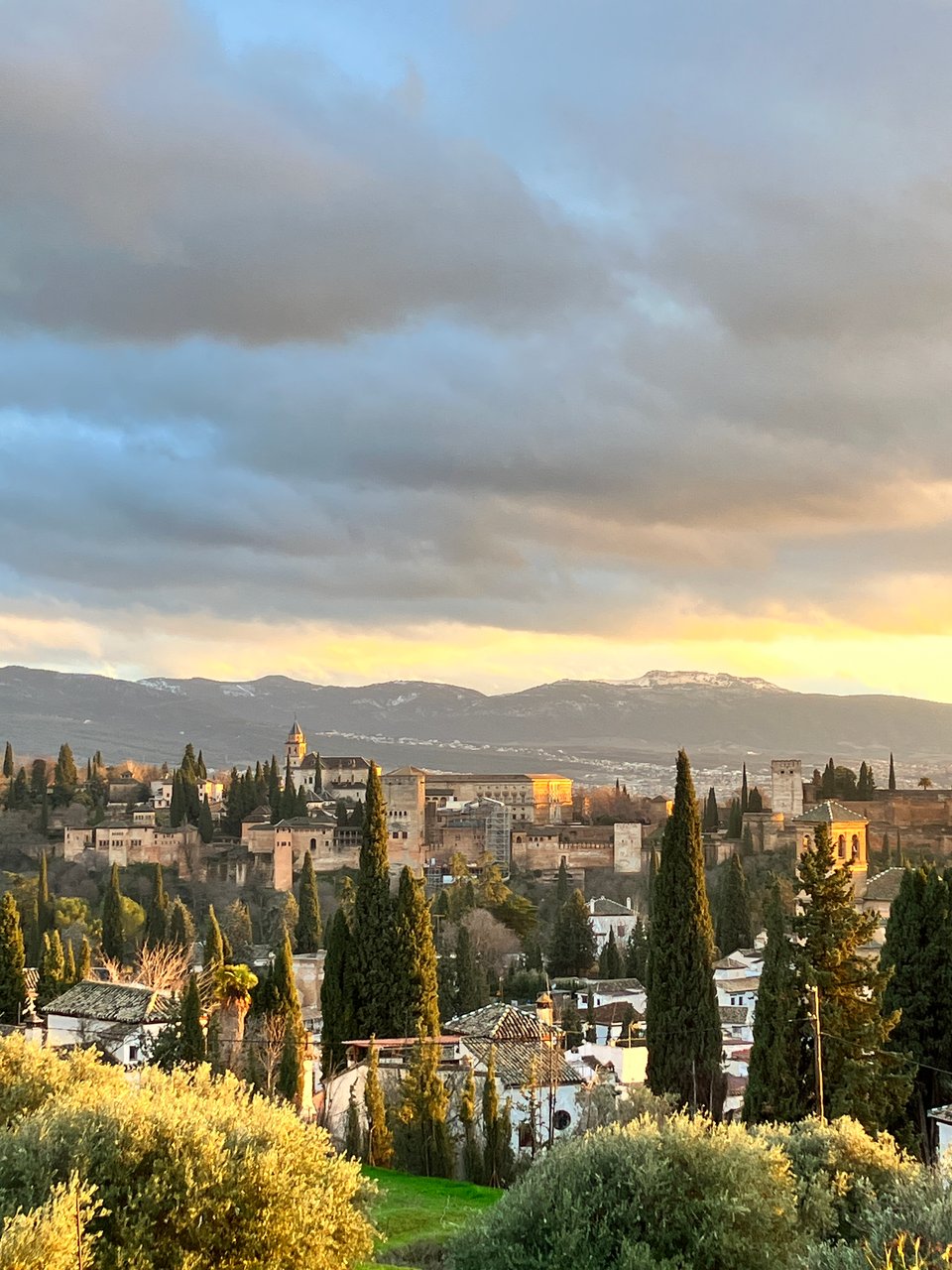 Last weekend we took the train from Seville to Granada and (unexpectedly) stepped out into much cooler weather. Granada sits at the foot of the Sierra Nevada mountains, at roughly 730 meters (2,400 feet) above sea level.