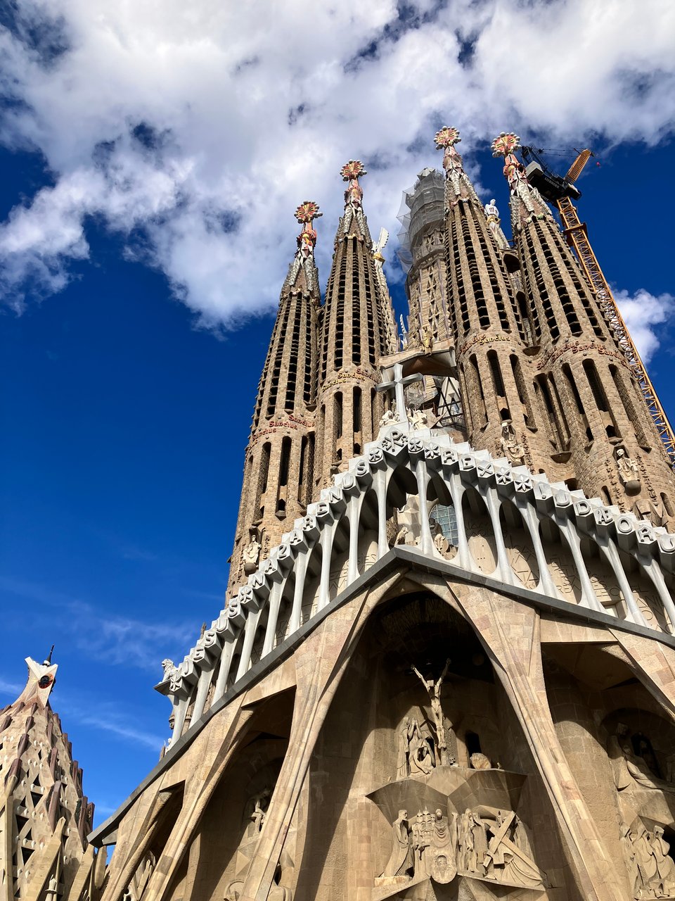 On our third day in Barcelona, we visited the Sagrada Familia church, which has been under continuous construction since 1882. It seems to morph into different styles from one section to another, mixing bright “Art Noveau” splashes with more traditional Gothic carvings.