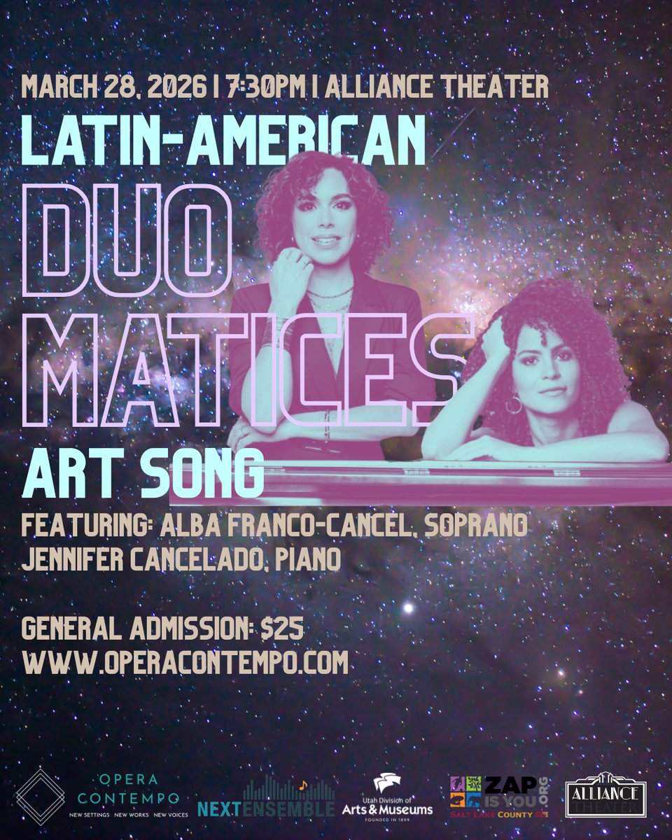 Join us in one week for Duo Matices: Latin-American Art Song on Saturday, March 28 at 7:30pm. Presented by Opera Contempo and held at Alliance Theater at Trolley Square, this soprano and pianist duo will blow you away with Spanish-language repertoire in this edutaining concert.