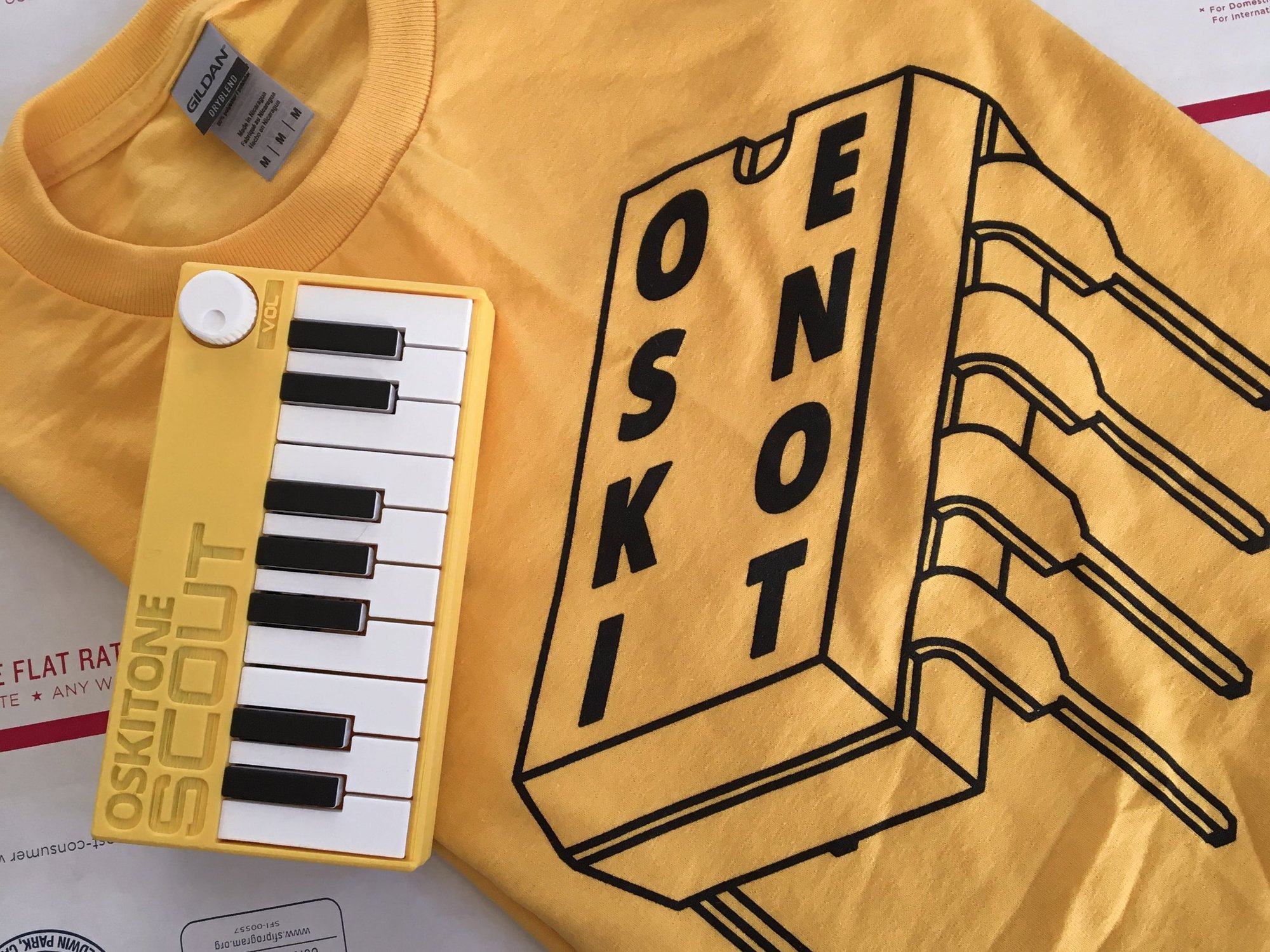 As a followup to the confusing DIP8 stickers I dropped two months ago, I got a bunch of t-shirts made too. I've wanted to make Oskitone shirts for awhile and I like these a lot!