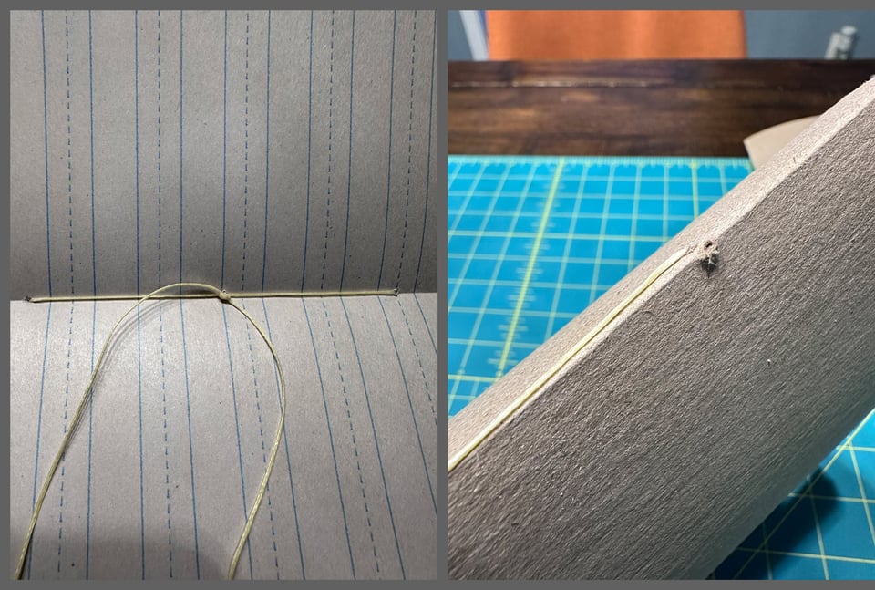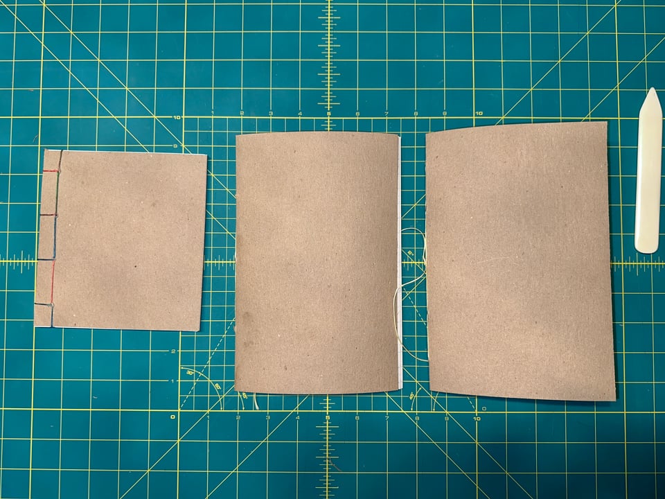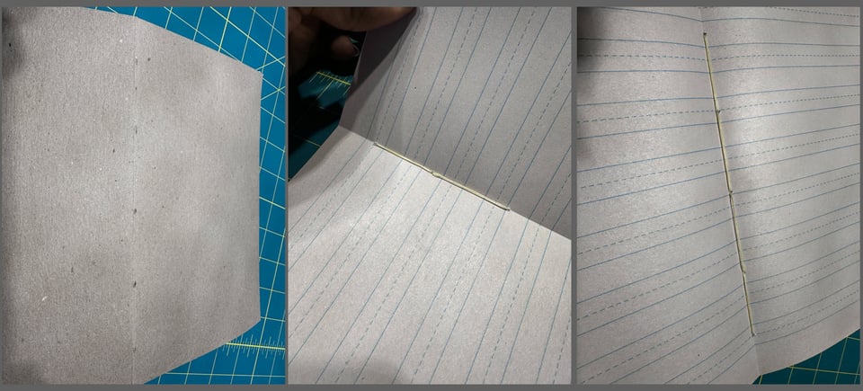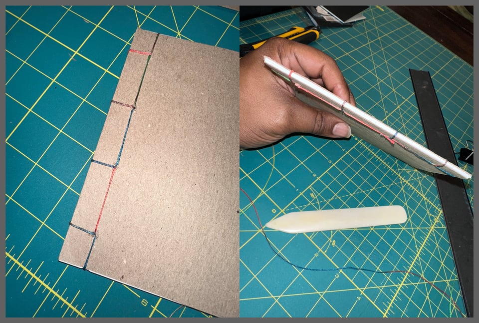 Last month I tried this stitching, and I messed up the order of which hole to go through and ended up with a knot on the inside and outside of the spine…