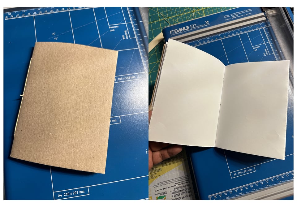 Using some plain printer paper for the pages, and some super flimsy chipboard (that I originally bought to use for case binding), for the cover: