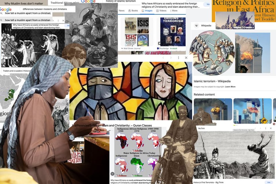R. Canon Griffin: Simply put, it eases the construction of meanings, the presentation of multiplicity in a single frame. Sometimes a deliberate intention to flummox. Most important of all is that it helps to make bewildering connections. How the invention of Coca Cola in the year 1886 relates to the first Ugandan Christian youths getting torched*, all presented in a sprawling commentary about the shortcomings of AI-generated imagery, can only be achieved through collage if it is to be one frame.