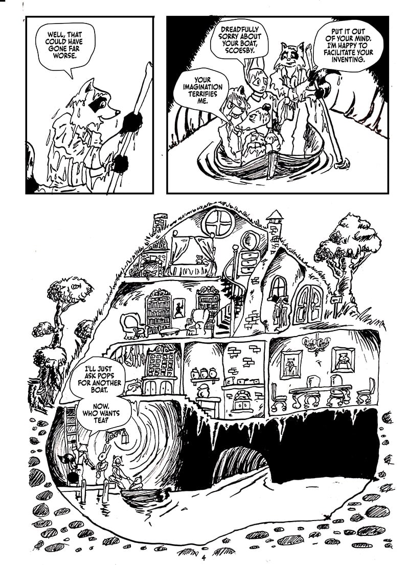 But! There is a new page of Scoesby Cuts a Rug, with my love of Jill Barklem’s Brambly Hedge books on full display, no less. So that’s nice. Page 5 is already up on the Patreon.