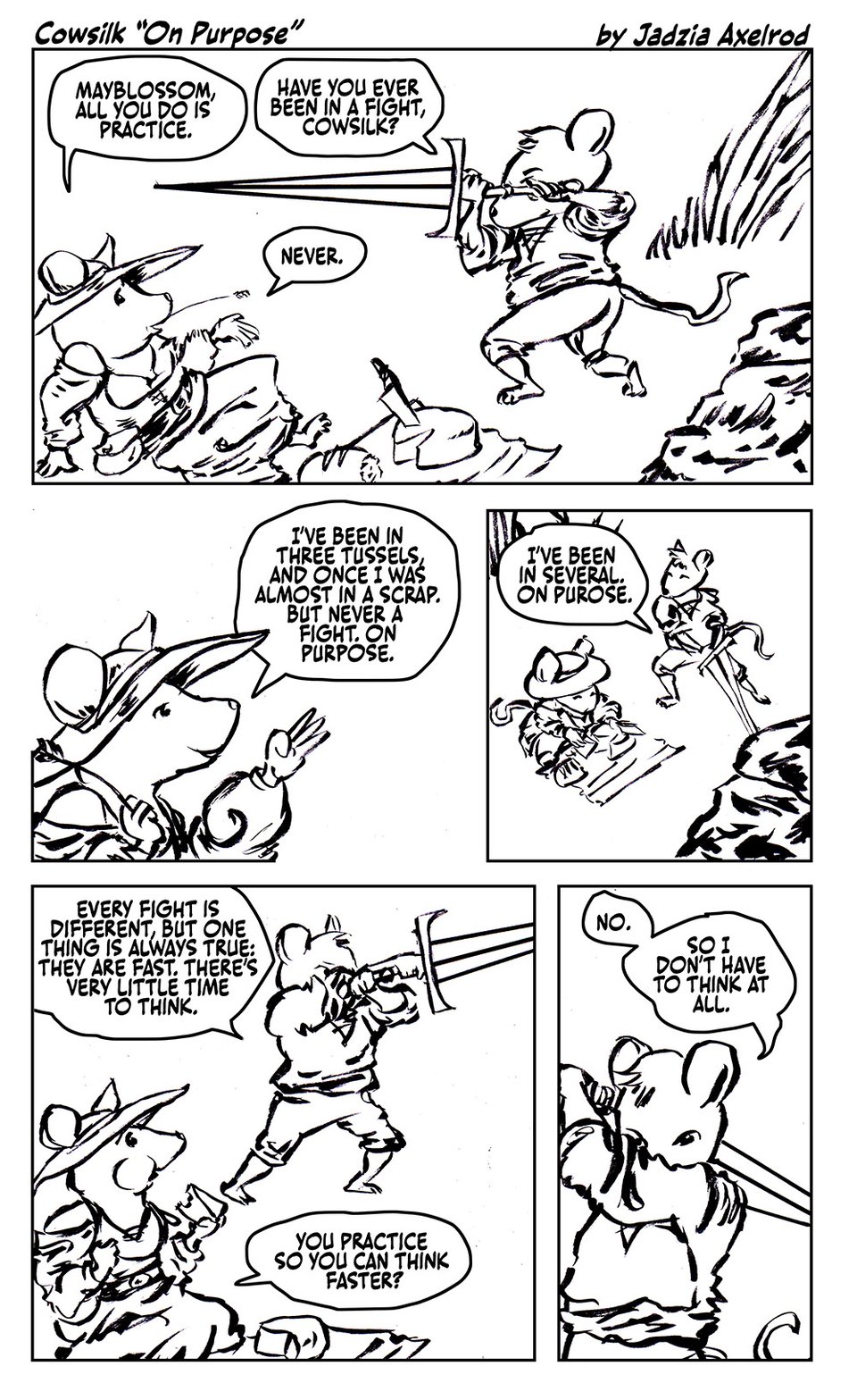Here’s a comic about mice with swords. Seems silly to post it now, but we also need silliness in our lives.